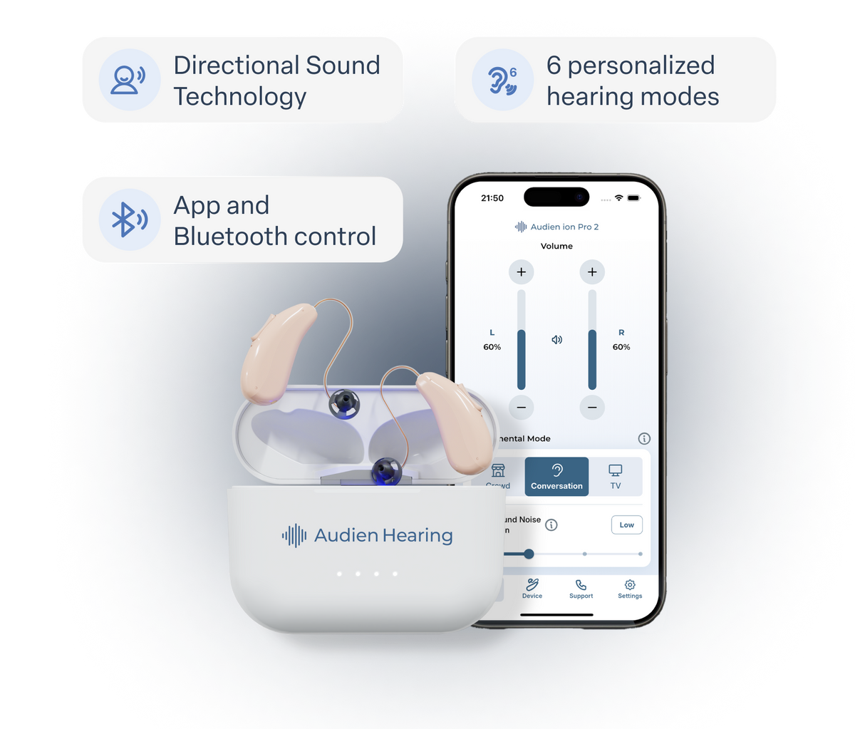 The future of hearing is here, and it's the Audien ION Pro 2 - our most advanced hearing aid yet.
